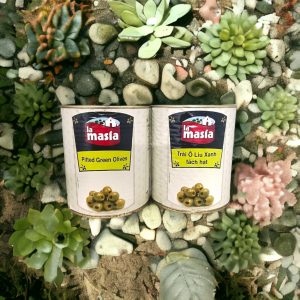 • Thành phần : Nước, quả ô liu xanh nguyên hạt, nước, muối, chất điều vị (E621, E627, E631) Chất Chỉnh độ acid ( E330, E270) chất chống oxi hoá ( E300).