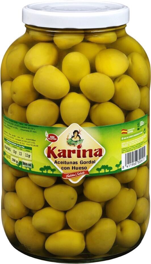 • Thành phần : Nước, quả ô liu xanh nguyên hạt, nước, muối, chất điều vị (E621, E627, E631) Chất Chỉnh độ acid ( E330, E270) chất chống oxi hoá ( E300).